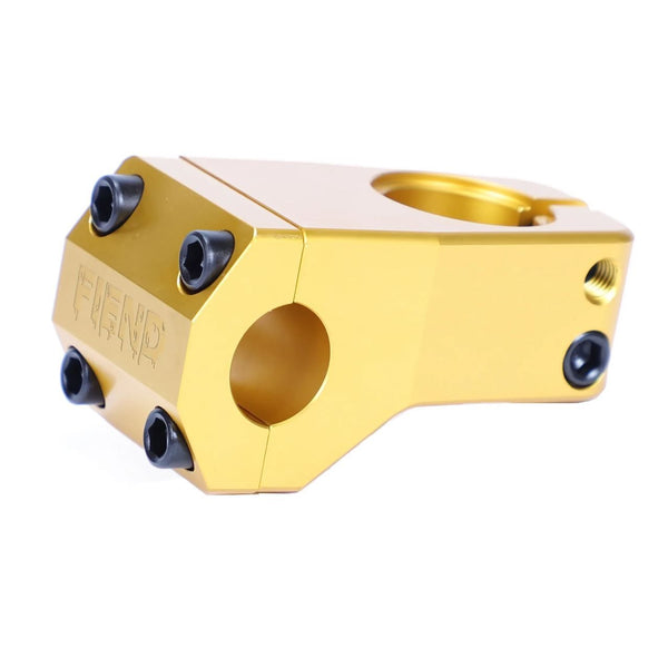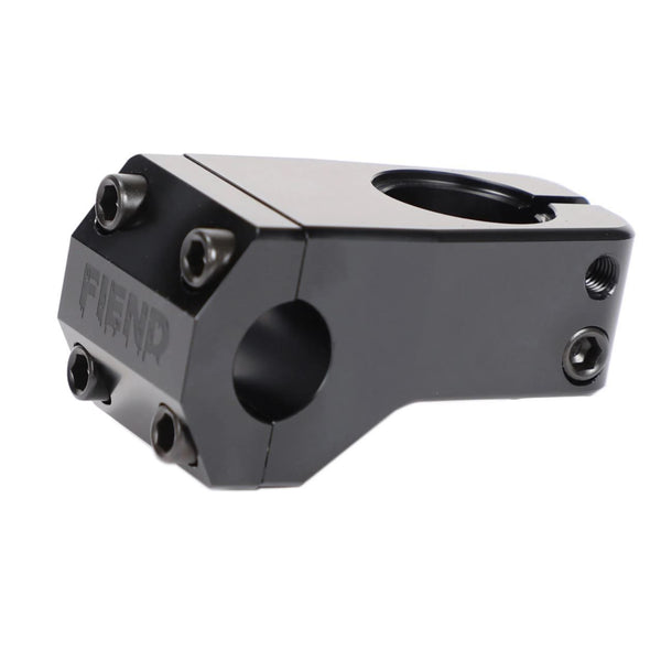 Top load stem CNC'd from 6061 aluminum with a wide body and front cap for added clamping power. Featuring an externally machined stem body and full internal bar surface contact area.